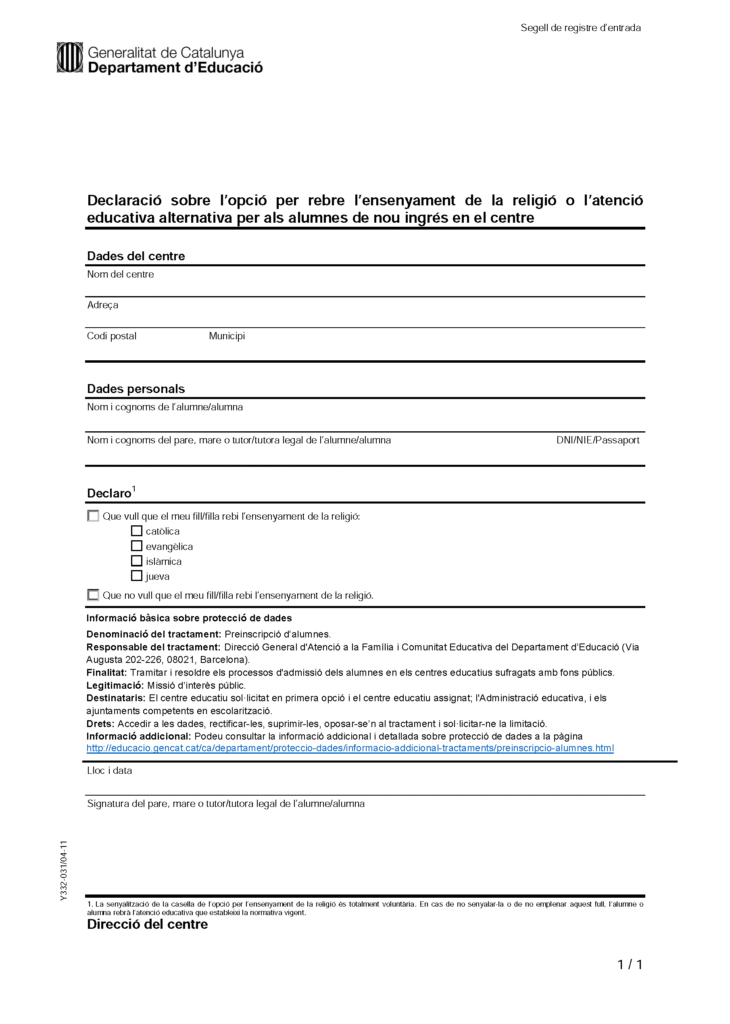 Sol·licitud Religió